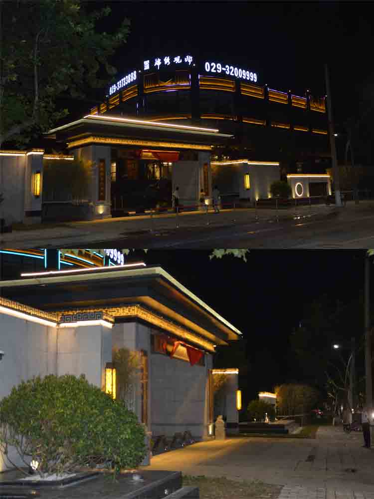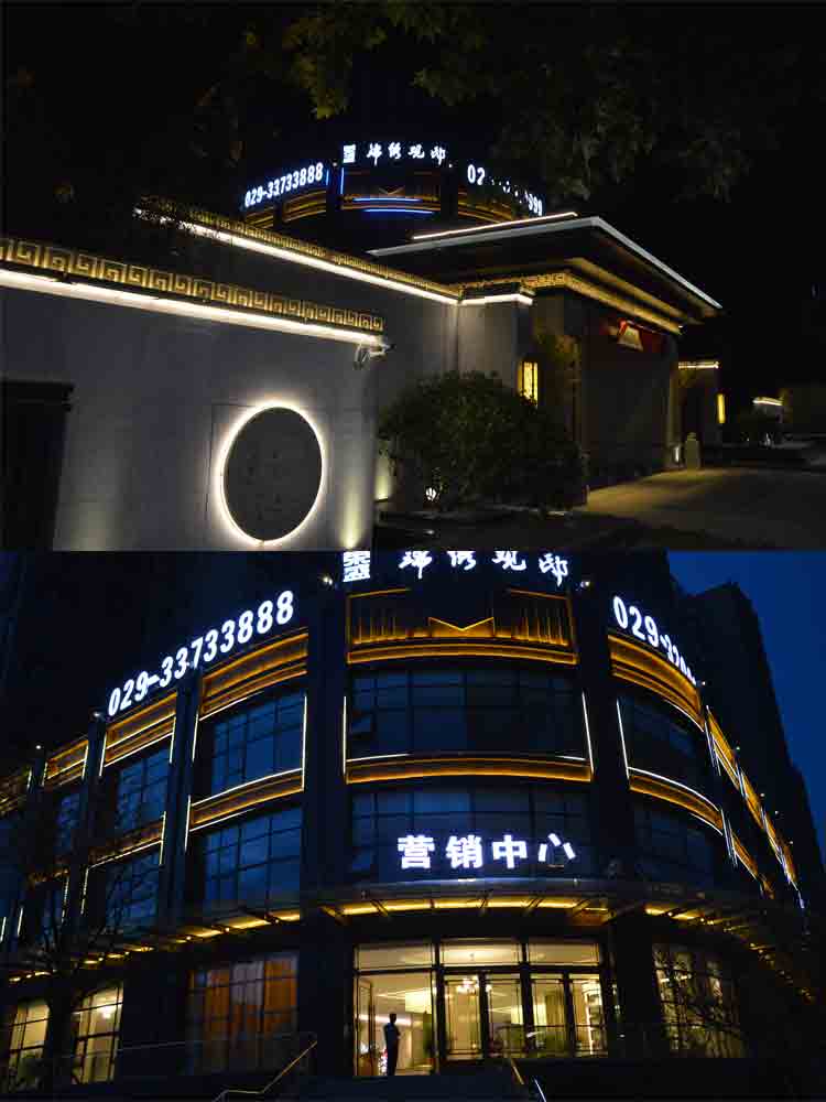 2018 榮盛景秀觀邸售樓部亮化,蘭光設(shè)計(jì)師根據(jù)其榮盛景秀觀邸售樓部商業(yè)屬性,商業(yè)照明設(shè)計(jì)明亮而醒目,營造商業(yè)經(jīng)營的夜景氛圍。以靜態(tài)的暖色燈光將其打亮,凸顯雅致。“榮盛景秀觀邸”標(biāo)志以高亮度的燈光,吸引顧客注意,增強(qiáng)商業(yè)宣傳力度。景觀燈造型與建筑外立面造型完美融合,晚上光斑效果與綠植景觀交相輝映,相映成趣!榮盛景秀觀邸的亮化設(shè)計(jì)施工,獲得了客戶的高度認(rèn)可。