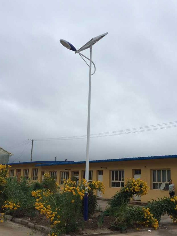 安裝的是農村常用規格的太陽能路燈,高度6米,光源30W,晚上照明6小時(因為是在農村地區,所以6小時